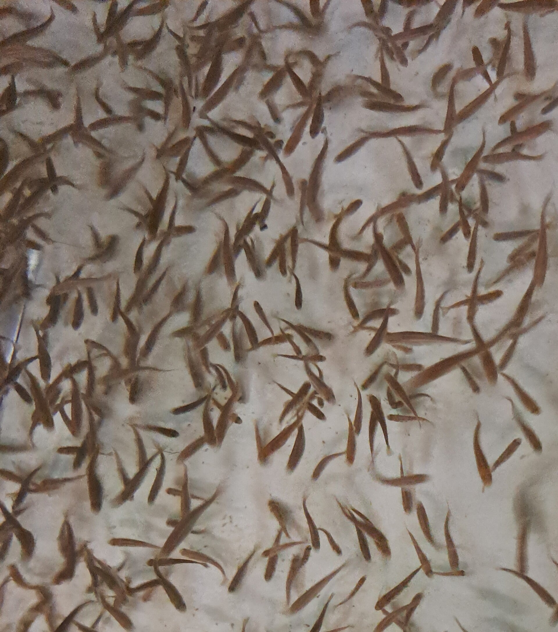 In unserem Bruthaus können aus den Eiern unter konstanten Bedingungen die etwa ein Zentimeter großen Forellen schlüpfen. In speziellen Aufzuchtbecken wachsen die jungen Forellen heran, bis sie mit einer Größe von circa 7 Zentimetern in die Naturbecken im Freien übersiedelt werden. Alle Becken werden stetig mit frischem Quellwasser gespeist, das neben der perfekten Temperatur und Trinkwasserqualität auch die Fließgeschwindigkeit hat, die ideale Aufzucht- und Wachstumsbedingungen ermöglichen.